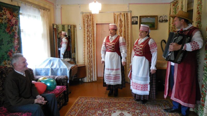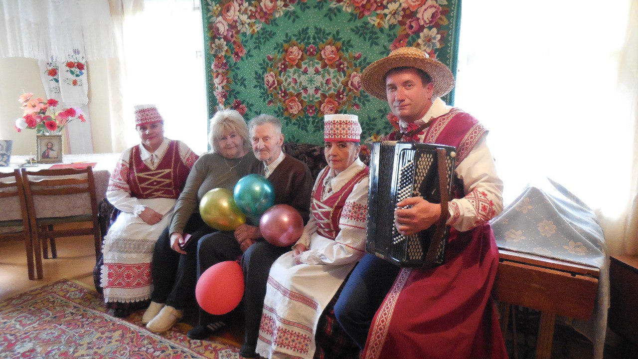 В рамках проекта «Глубинкой живет Беларусь» коллектив сектора нестационарного обслуживания населения ГУК «Дятловский РЦКиНТ» поздравили с 95-летним юбилеем Иван Карпович Сорочинского, долгожителя из д. Беляки. 95лет – это не просто возраст, это целая эпоха, отмеченная мудростью и достойная глубочайшего почтения. В свой юбилей, Иван Карпович смотрит на свое прошлое с гордостью и радостью. На вопрос о секрете долголетия он ответил просто и мудро: «Всю жизнь не боялся тяжелой работы. Стараюсь вести здоровый образ жизни, поддерживать себя в форме и не тратить силы на пустые обиды». Артисты поздравили юбиляра с праздником, пожелали здоровья, бодрости и исполнили песни, которые когда-то в молодости так радовали его сердце. В этот день ощущалась особая радость, ведь жизнь дарит возможность пережить такое замечательное событие вместе с такими замечательными долгожителями