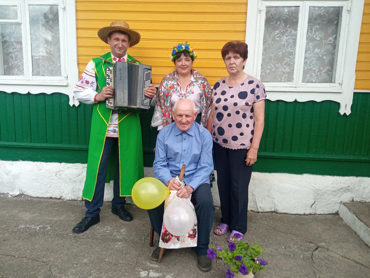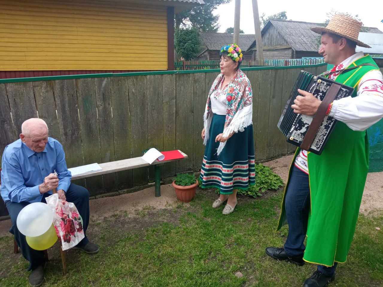 Коллектив сектора нестационарного обслуживания населения ГУК «Дятловский РЦКиНТ» в рамках проекта «Глубинкой живёт Беларусь» поздравили с 90-летним юбилеем долгожителя из деревни Санники-Фабишевского Ивана Юльяновича. В свой юбилей Іван Юльянович,  смотрит на жизнь с гордостью и радостью. Он благодарит судьбу за то, что она подарила ему столько прекрасных моментов, за то, что он смог прожить жизнь достойно и честно. На вопрос о секрете долголетия он ответил просто и мудро: «Всю жизнь не боялся тяжелой работы.  Артисты поздравили юбиляра с праздником, пожелали здоровья, и исполнили песни, которые в молодости так радовали душу.