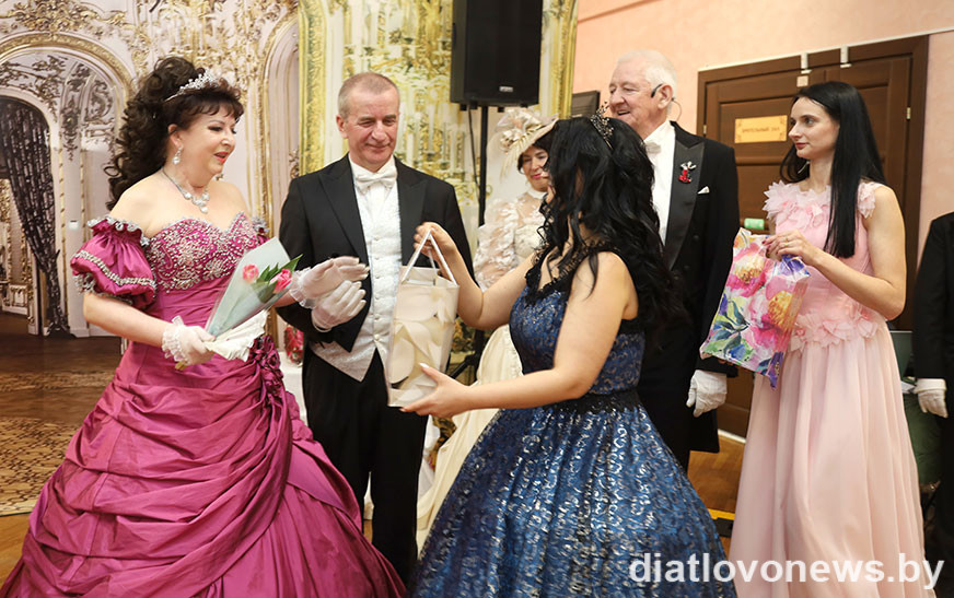 Элегантныя дамы ў шыкоўных уборах і статныя кавалеры на працягу вечара пад гукі музыкі паказвалі сваё майстэрства і проста атрымлівалі асалоду, танцуючы вальсы, факстрот, катыльён, полькі, кадрылю, шапелуаз, падэграс, падэспань; актыўна ўдзельнічалі ў бальных віктарынах, гульнях, якія ладзілі абаяльныя вядучыя Анастасія Голуб і Марына Лукіянец.