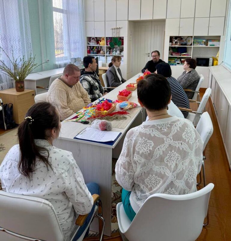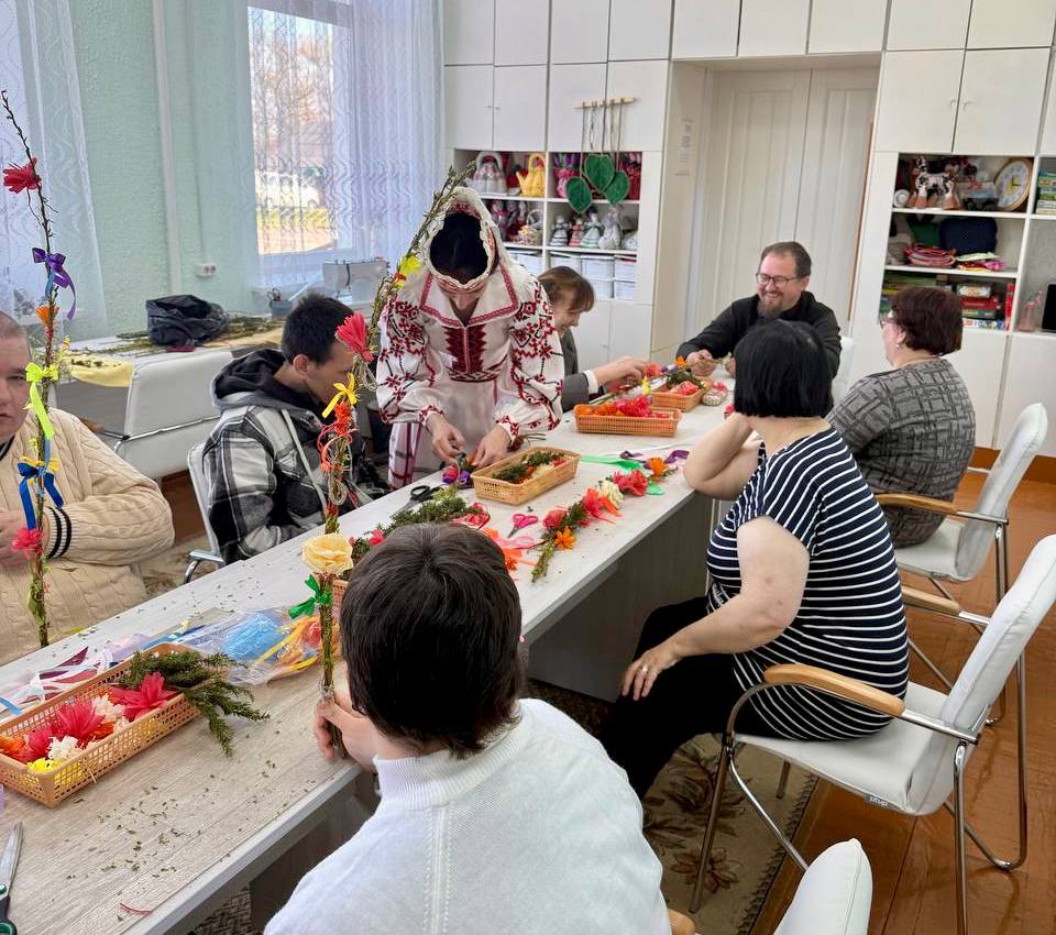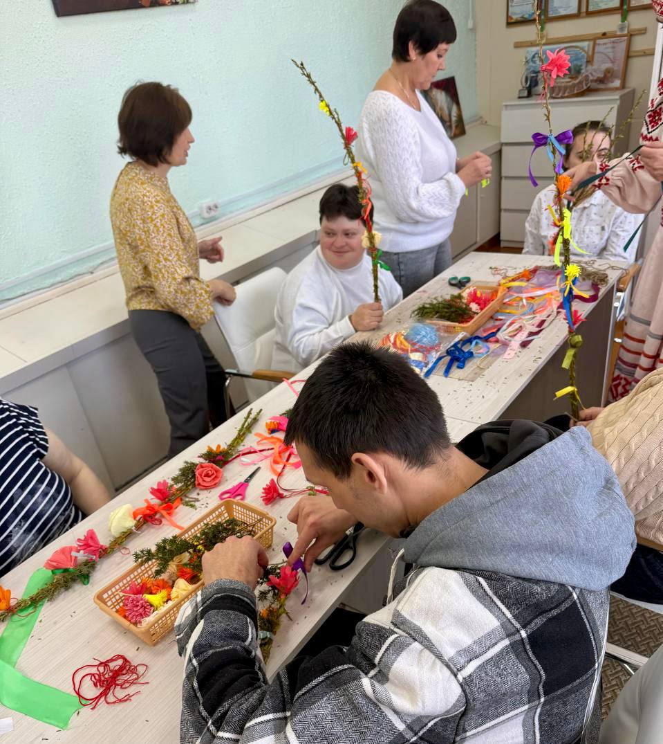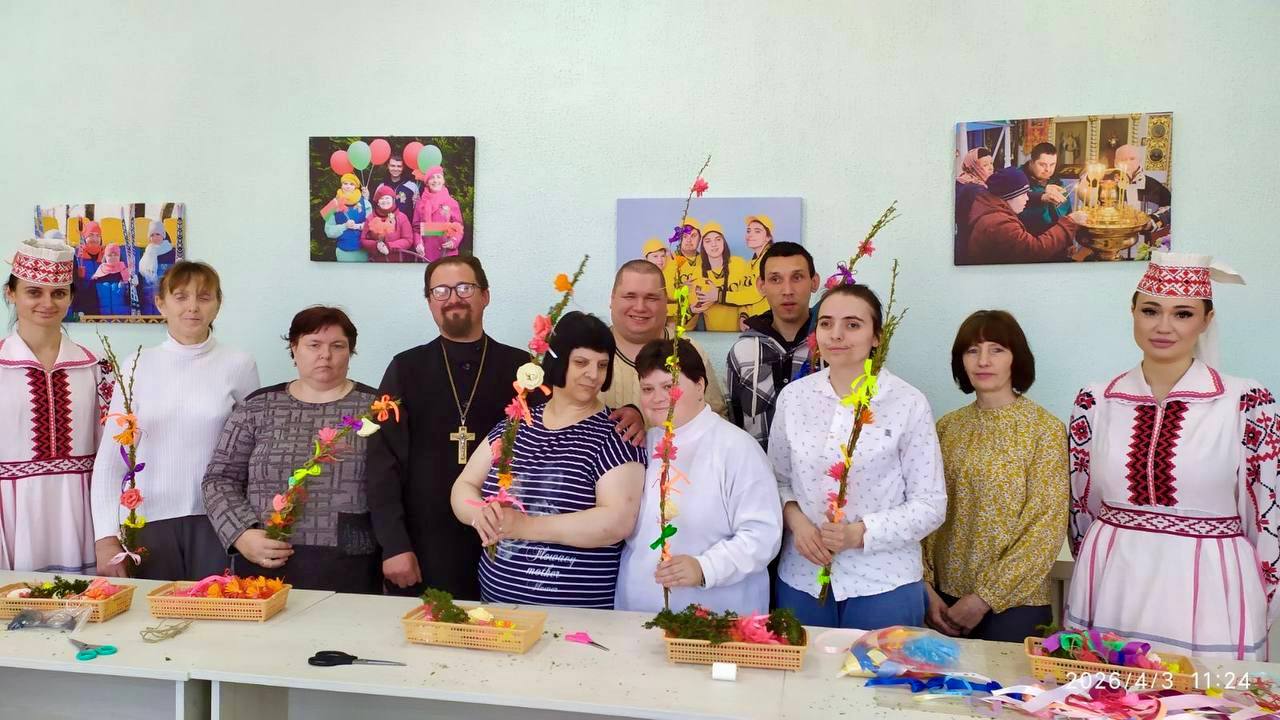 Иерей Алексей Степанович рассказал о значении праздника и символизме вербы. Затем участники с радостью украшали вербочки лентами и цветами, создавая праздничные букеты. Мероприятие соединило радость творчества с духовным осмыслением.