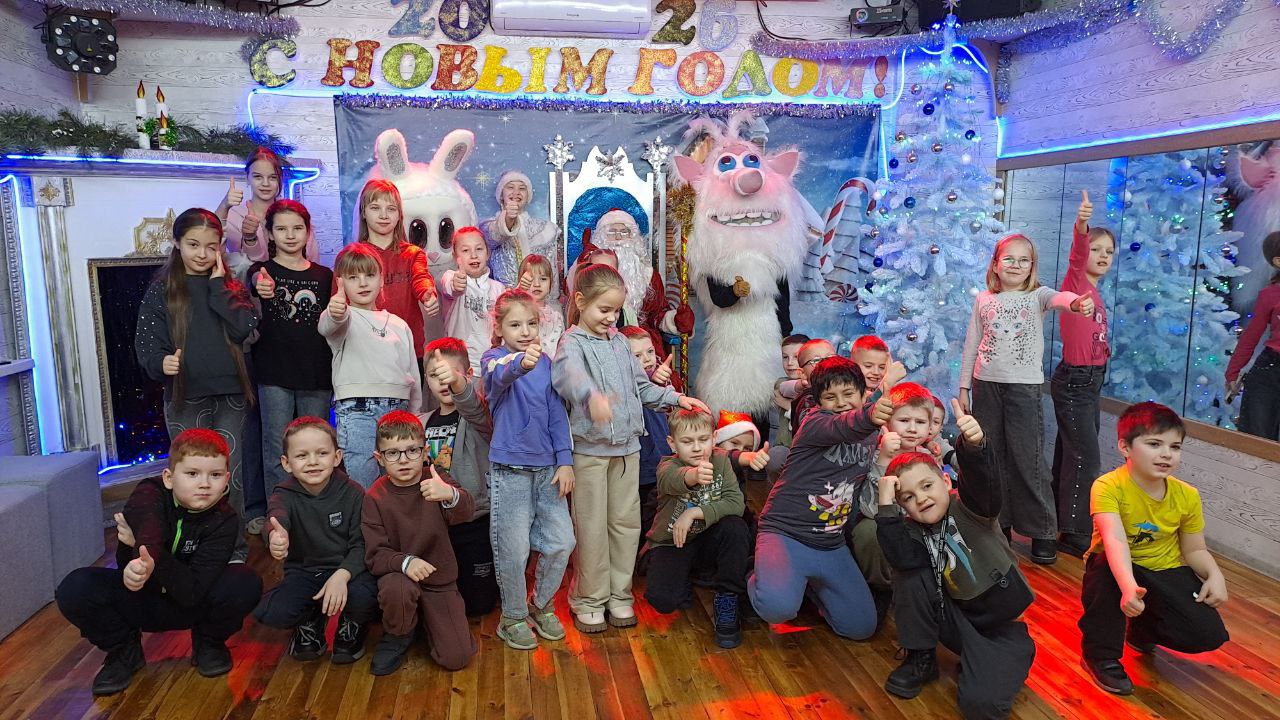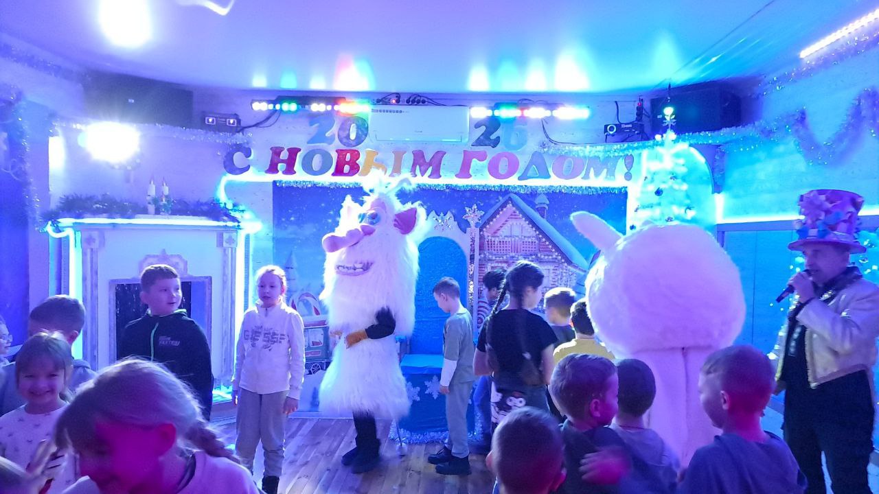 Вместо привычной сцены детей ждало интерактивное путешествие по владениям главного зимнего волшебника. Ростовые куклы — сам Дедушка Мороз, веселая Снегурочка, Лабуба и Буба — не просто выступали, а стали гидами по сказочному миру.