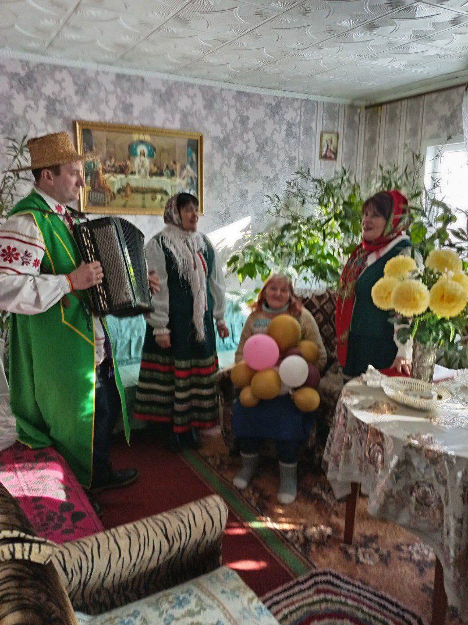 Творческий коллектив сектора нестационарного обслуживания населения побывал в гостях у жительницы д. Жиковичи Ирины Игнатьевны Лишик, что бы поздравить 85-летним юбилеем удивительную женщину — Ирину Игнатьевну Лишик.
