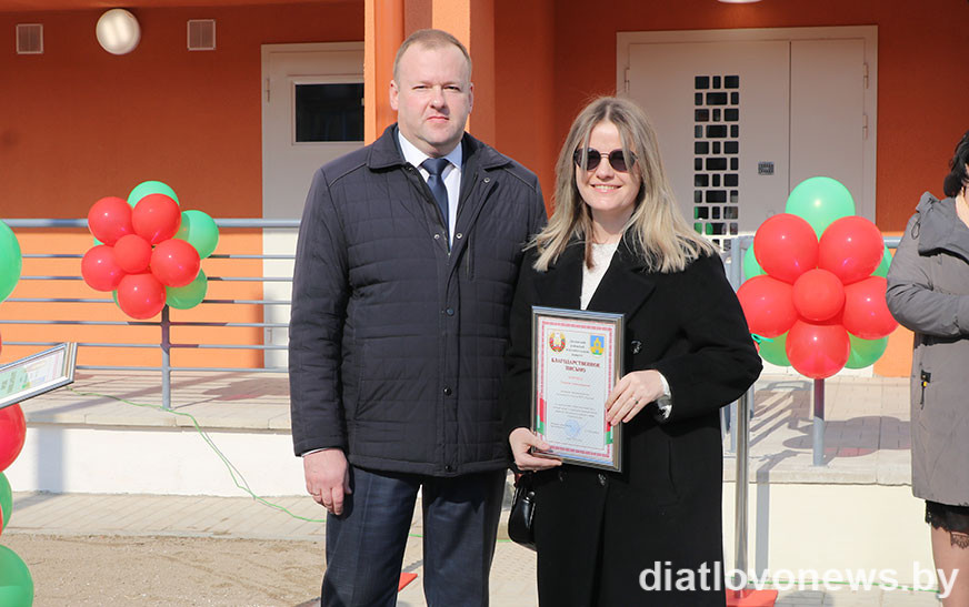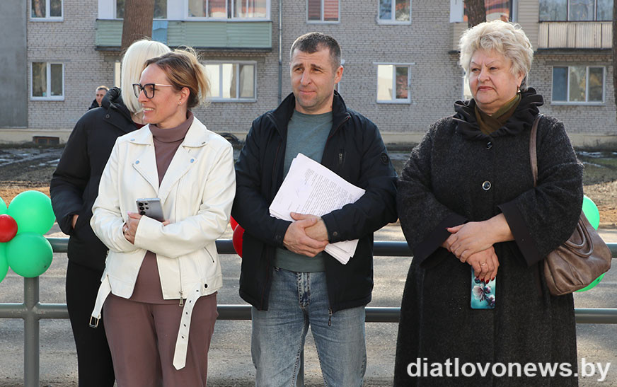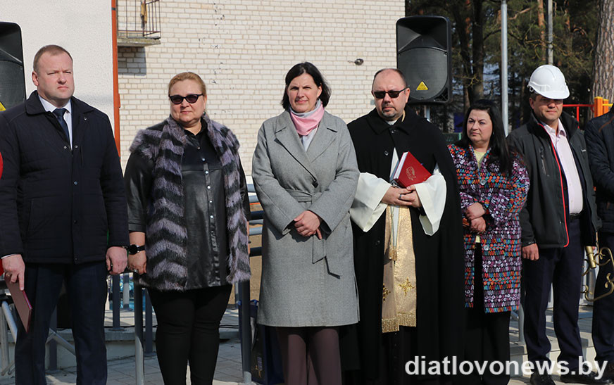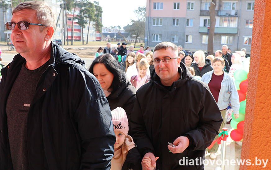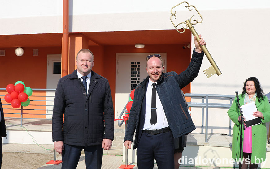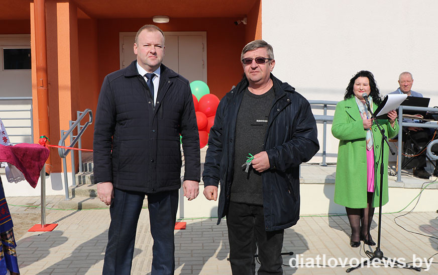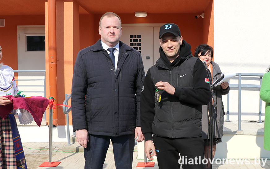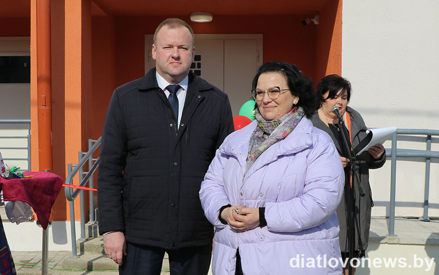 – Мы сабраліся тут з цудоўнай нагоды ў такі сонечны перадсвяточны дзень. 15 сакавіка ўсе беларусы будуць адзначаць важнае дзяржаўнае свята – Дзень Канстытуцыі Рэспублікі Беларусь. Гэта асноўны закон, які гарантуе кожнаму грамадзяніну права на дастойныя ўмовы жыцця. Гэтыя гарантыі чарговы раз знаходзяць рэальнае ўвасабленне на Дзятлаўшчыне. Мы адчыняем дзверы 14-кватэрнага жылога дома. Кожная з гэтых кватэр – асобная гісторыя, новыя надзеі і грунтоўныя прычыны для шчасця. Для кагосьці гэта першы крок да ўласнага жылля, а для іншых – доўгачаканае вырашэнне важнага жыллёвага пытання, – адзначыў Дзмітрый Расціслававіч. – Хачу выказаць словы ўдзячнасці намесніку старшыні аблвыканкама Андрэю Жуку, старшыні камітэта архітэктуры і будаўніцтва аблвыканкама Міхаілу Петуху за падтрымку і дапамогу ў рэалізацыі задумкі кіраўніцтва раёна па рэканструкцыі будынка ў шматкватэрны дом. Гэта чацвёрты завершаны праект пераўтварэння неэксплуатуемых будынкаў у арэнднае жыллё. Яшчэ адзін у Дзятлаве сёння ў ходзе рэалізацыі. Шчыры дзякуй дырэктару падраднай арганізацыі ТАА “Зодчий” Сяргею Тумашчыку за ўважлівае кіраўніцтва на працягу ўсяго працэсу, якасна і своечасова выкананую работу. Хочацца адзначыць арганізацыю, якая ажыццяўляла нагляд за рэканструкцыяй – Упраўленне капітальнага будаўніцтва Навагрудскага раёна, а таксама распрацоўшчыкаў праектна-каштарыснай дакументацыі – ТАА “НикАртПро” (горад Навагрудак).