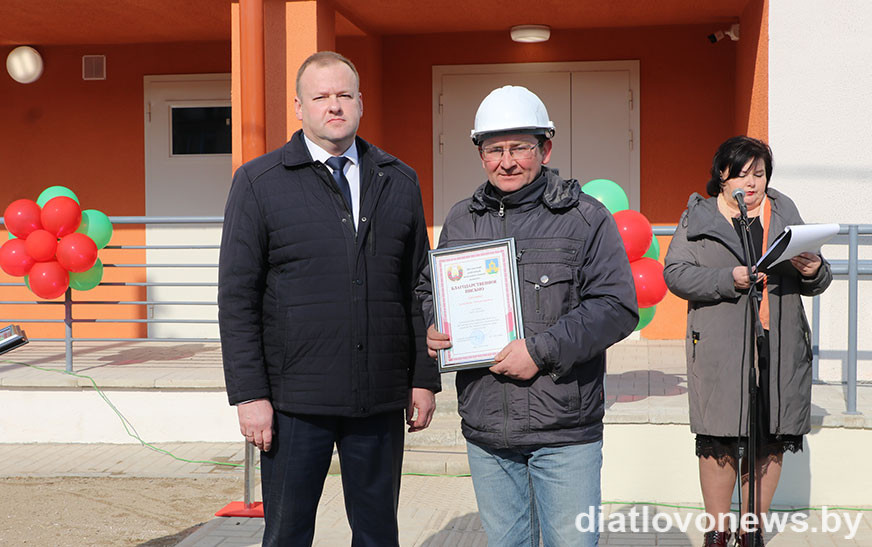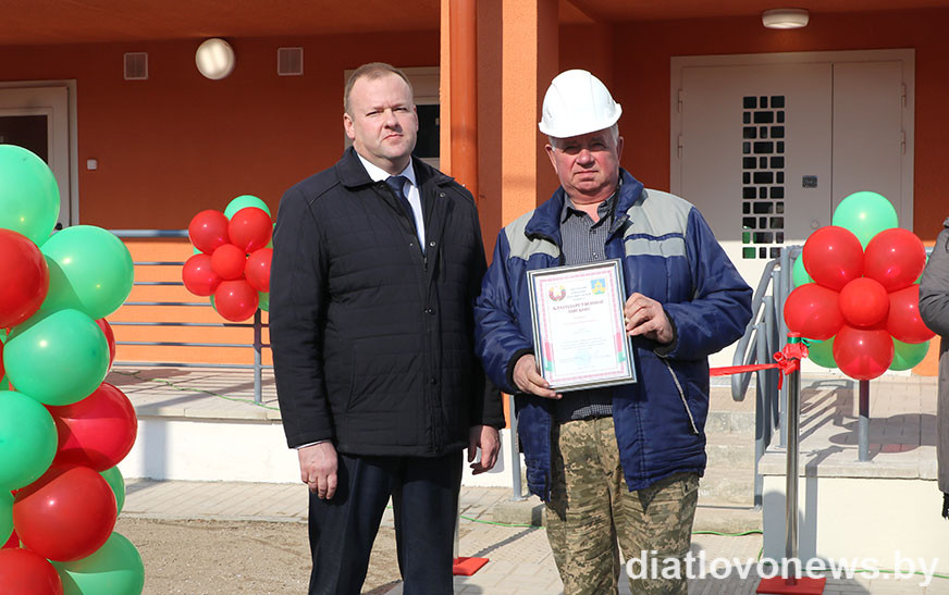 Дзмітрый Расціслававіч уручыў падзячныя лісты старшыні райвыканкама будаўнікам, якія вызначыліся ў рэалізацыі праекта.