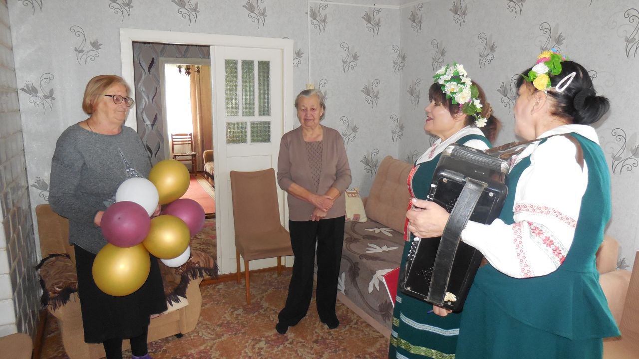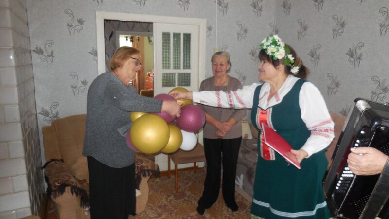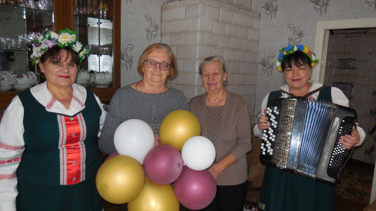Коллектив сектора нестационарного обслуживания населения ГУК «Дятловский РЦКиНТ» в рамках проекта «Глубинкой живёт Беларусь» поздравили с 80-летним юбилеем жительницу деревни Плебановичи — Якшук Галину Антоновну.