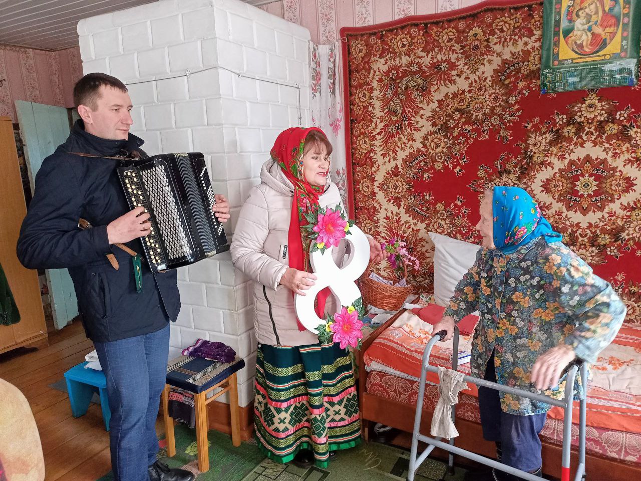 🎤🎶🚌Творческий коллектив сектора нестационарного обслуживания населения с сердечный музыкальным поздравлением отправился в отдалённые деревни Дятловского района – Накрышки, Романовичи, Новики-чтобы подарить живущим в них женщинам пожелания весеннего цветения, улыбок и трепетной нежности. 🎶🎶🎶🎶Артисты раскрасили яркими и душевными мелодиями простые будни жителей этих деревень. А музыкальные композиции посвящённые женщинам, оставили у всех собравшихся в сердцах теплые эмоции и воспоминания о такой приятной встрече.