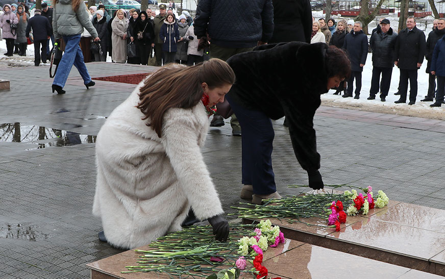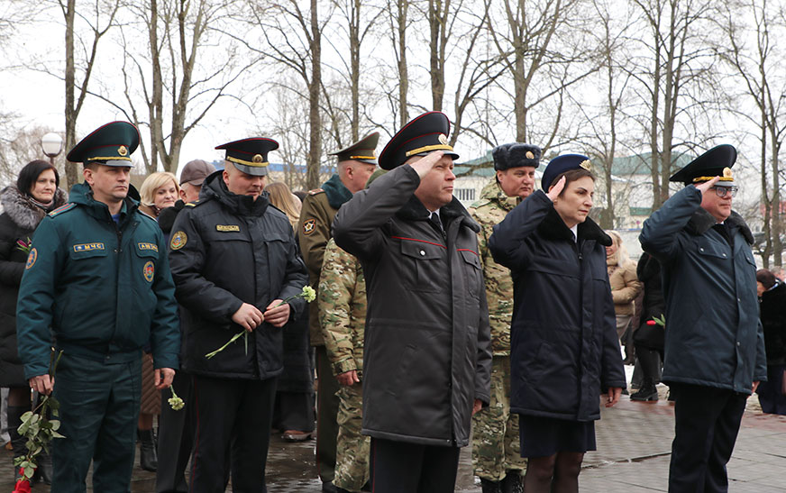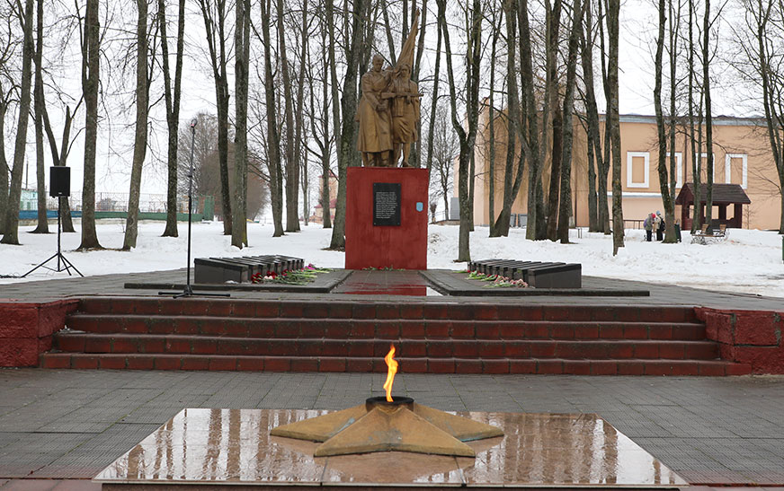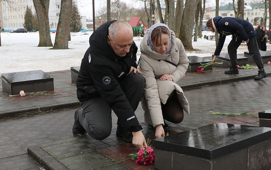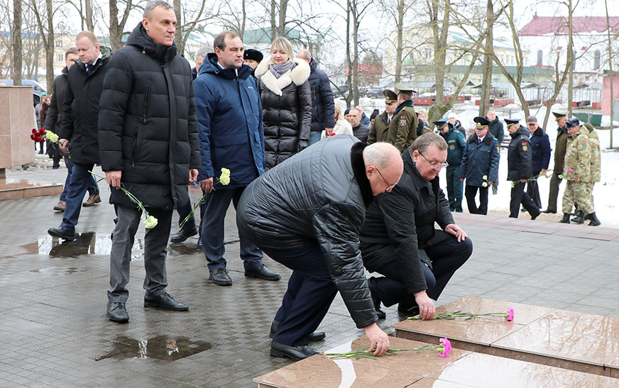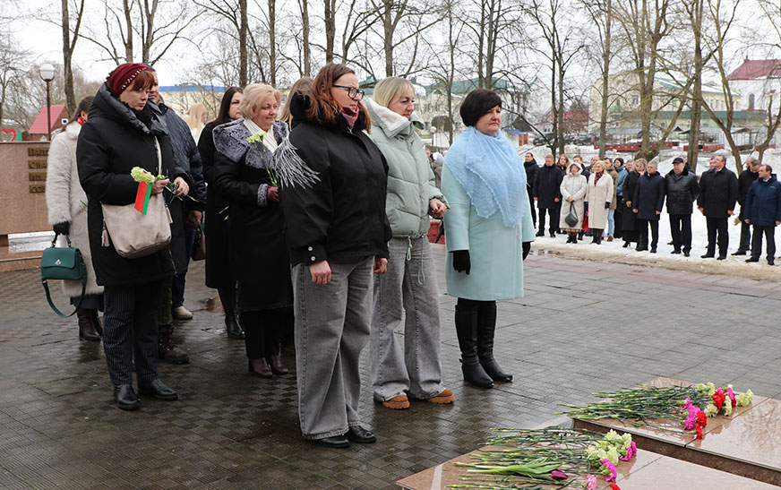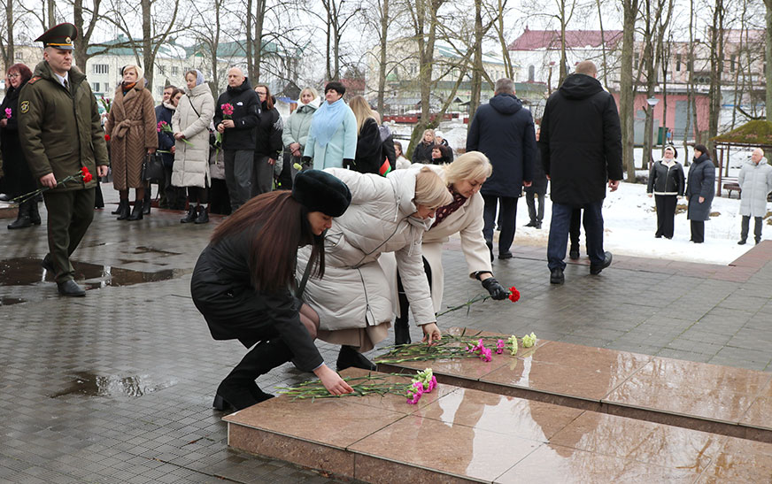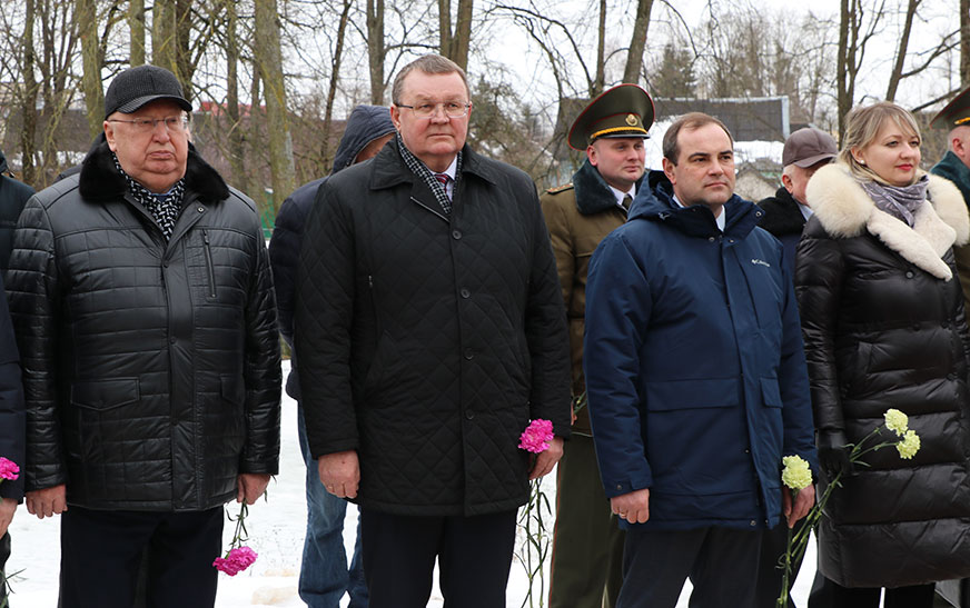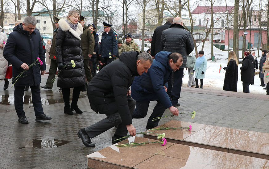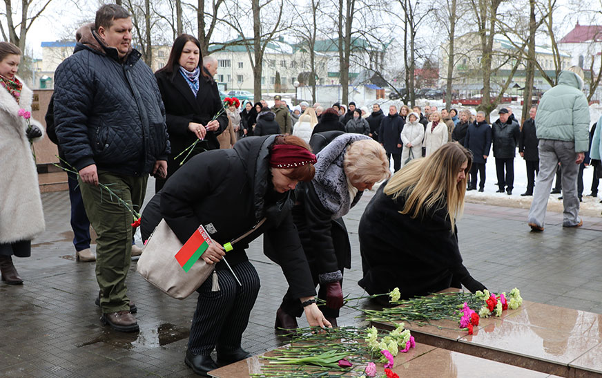 Удзельнікі мітынгу ўшанавалі памяць герояў Вялікай Айчыннай вайны і ўсклалі кветкі да помнікаў.
