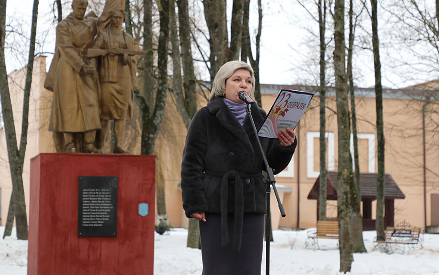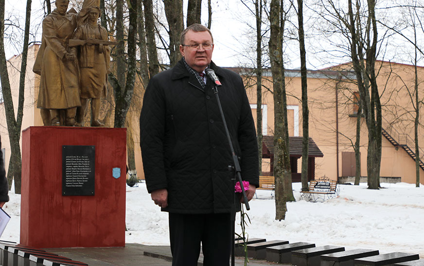 – 23 лютага – асаблівы дзень для нашай краіны, калі мы ўшаноўваем людзей, якія абараняюць нашу Радзіму, стаяць на рубяжах Айчыны. Сёння мы аддаём даніну павагі нашым продкам, землякам, якія ў далёкія гады Вялікай Айчыннай вайны абаранялі свабоду і незалежнасць нашай краіны. Вось ужо больш за 80 гадоў дзякуючы іх стойкасці, мужнасці, гераізму, патрыятызму мы жывём пад мірным небам. Сімвалічна, што гэта мерапрыемства сабрала дзятлаўчан розных узростаў і працоўных калектываў, нашу моладзь. Дзякуючы пераемнасці пакаленняў, моцным традыцыям краіна развіваецца, сучаснікі ўшаноўваюць памяць аб ключавых падзеях нашай гісторыі. Сёння я хачу выказаць словы павагі і памяці землякам, якія пахаваны на гэтым месцы, – Героям Савецкага Саюза Яну Фогелю, Паўлу Пятрову і чырвонаармейцам, якія загінулі пры вызваленні Дзятлава. Пакуль мы помнім і шануем мінулае, будзе мір на беларускай зямлі.