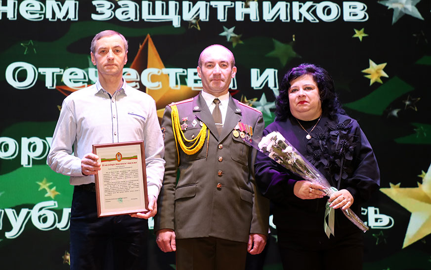 Аляксандр Аляксандравіч уручыў узнагароды ад камандавання воінскіх часцей бацькам, чые сыны дастойна праходзяць тэрміновую службу. Падзячнымі лістамі былі адзначаны Аляксандр і Наталля Лянныя, Юрый і Таццяна Радзіеўскія, Васілій і Галіна Лябецкія.