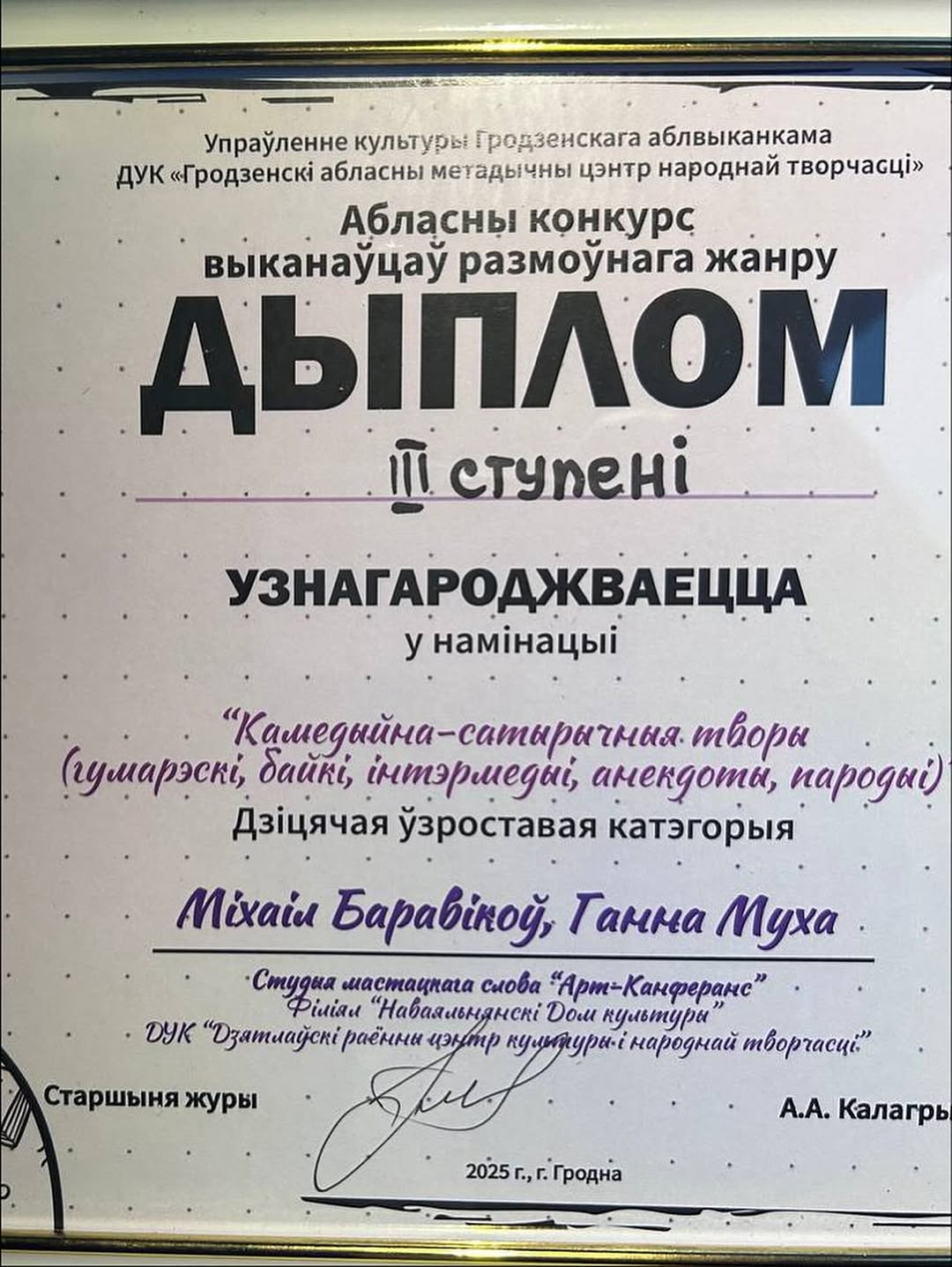 Наваяльнянскі дом культуры прадставілі удзельнікі дзіцячага гуртка мастацкага слова “Арт-канферанс” — 🥉Дыплом 3 ступені! (Кіраўнік Наталля Нагорная)