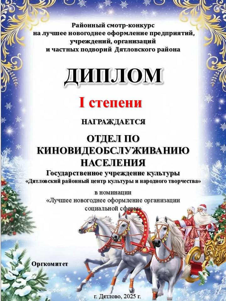 Дыпломам I ступені ўзнагароджаны Аддзел па кінавідэаабслугоўванні насельніцтва Дзятлаўскага РЦКіНТ 🎬🎄
