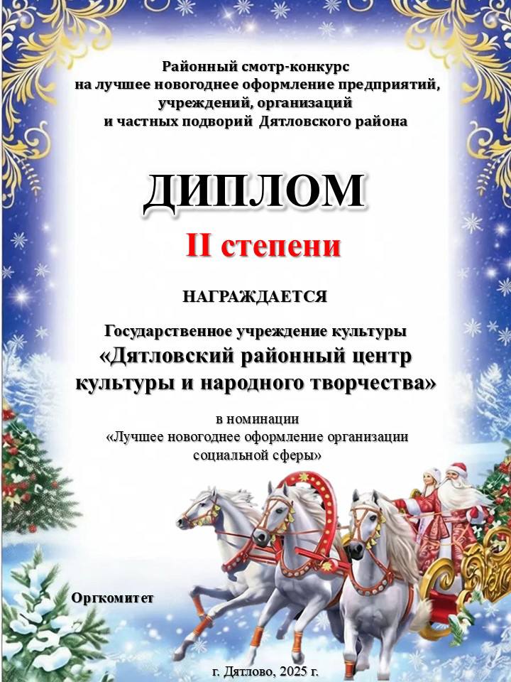 Па выніках раённага конкурсу на лепшае навагодняе афармленне прадпрыемстваў, ўстаноў Дзятлаўскага раёна» у намінацыі «Лепшае навагодняе афармленне ўстановы сацыяльнай сферы»: