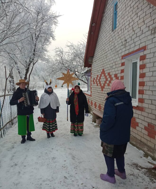 На гэты раз наведалі з калядным абрадам “Шчадрэц” жыхароў аддаленых і маланаселеных вёсак: Студзераўшчына, Вялікія Шастакі, Горка, Лядзіны.