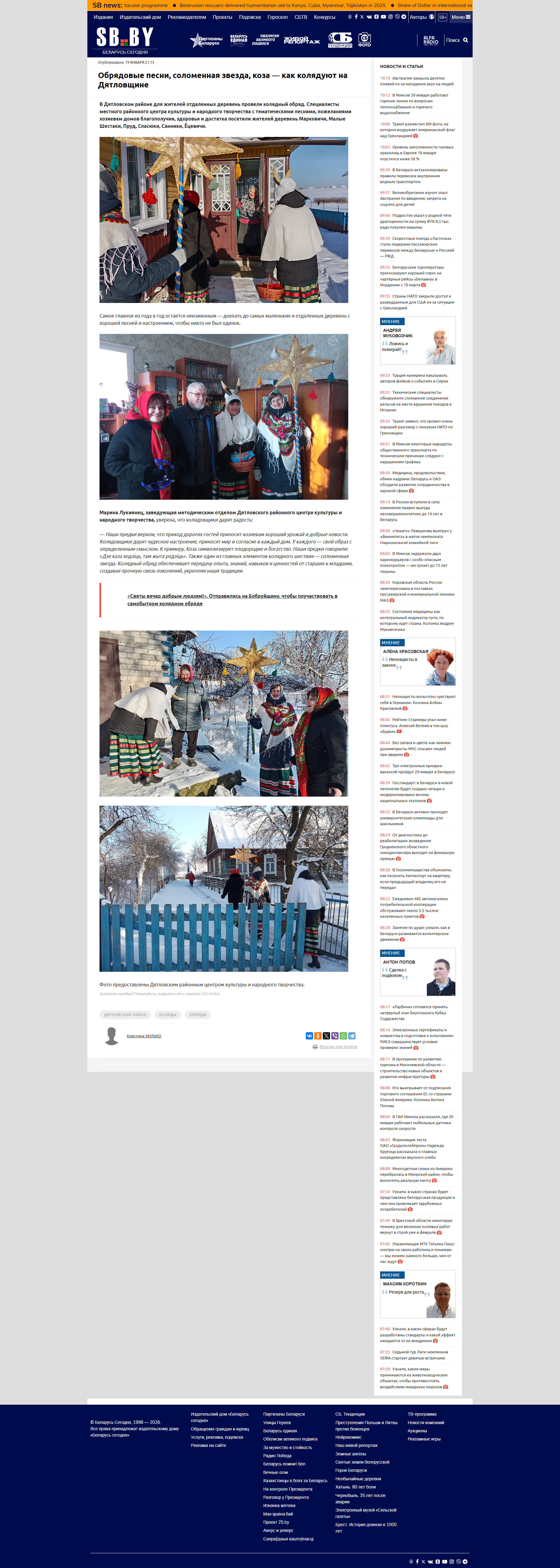 Обрядовые песни, соломенная звезда, коза — как колядуют на Дятловщине Автор записи:admin Запись опубликована:19.01.2026 Рубрика записи:Новости Вам также может понравиться «ПОЗДРАВЛЯЕМ И ГОРДИМСЯ» 03.07.2018 Митинг «Пока мы помним — мы живём» 15.02.2018 Концертно-игровая программа «Вместе веселее» 01.09.2019